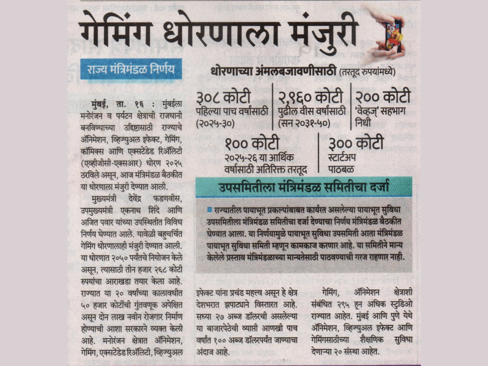 The state's AVGC-XR Policy 2025 was approved during a meeting of the state cabinet chaired by Chief Minister Devendra Fadnavis.