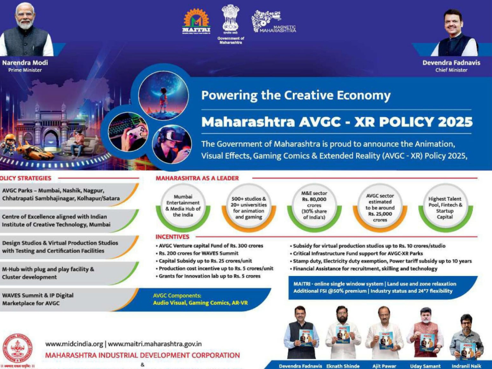 The policy envisions Maharashtra as a global destination for AVGC-XR by fostering innovation, entrepreneurship and intellectual property creation.